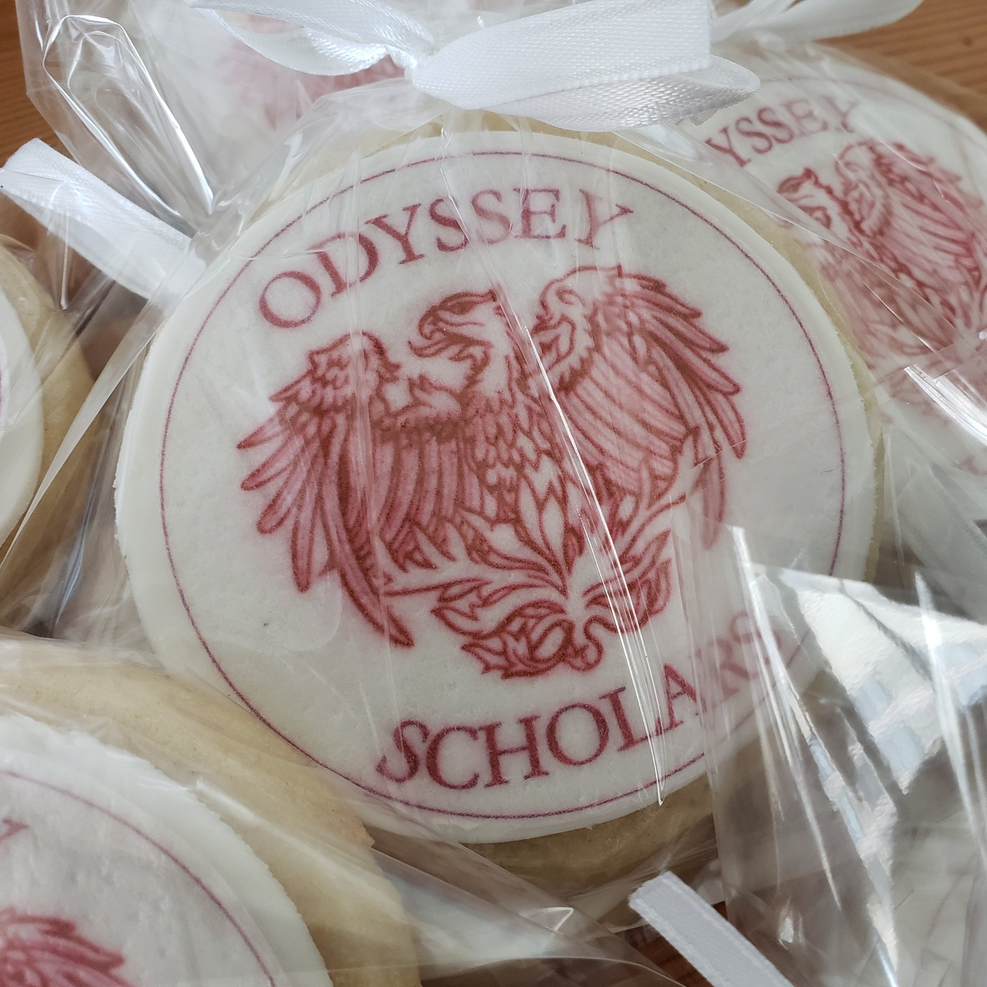 Circle Logo Cookies Gift Boxes are available with our medium size logo cookie (2.25 inches diameter), quantity 6, 12 or 24 cookies. All orders come in decorative box with optional gift message. After receipt of order confirmation, please send image(s) and gift message to hello@lindyscookiestudio.com.
