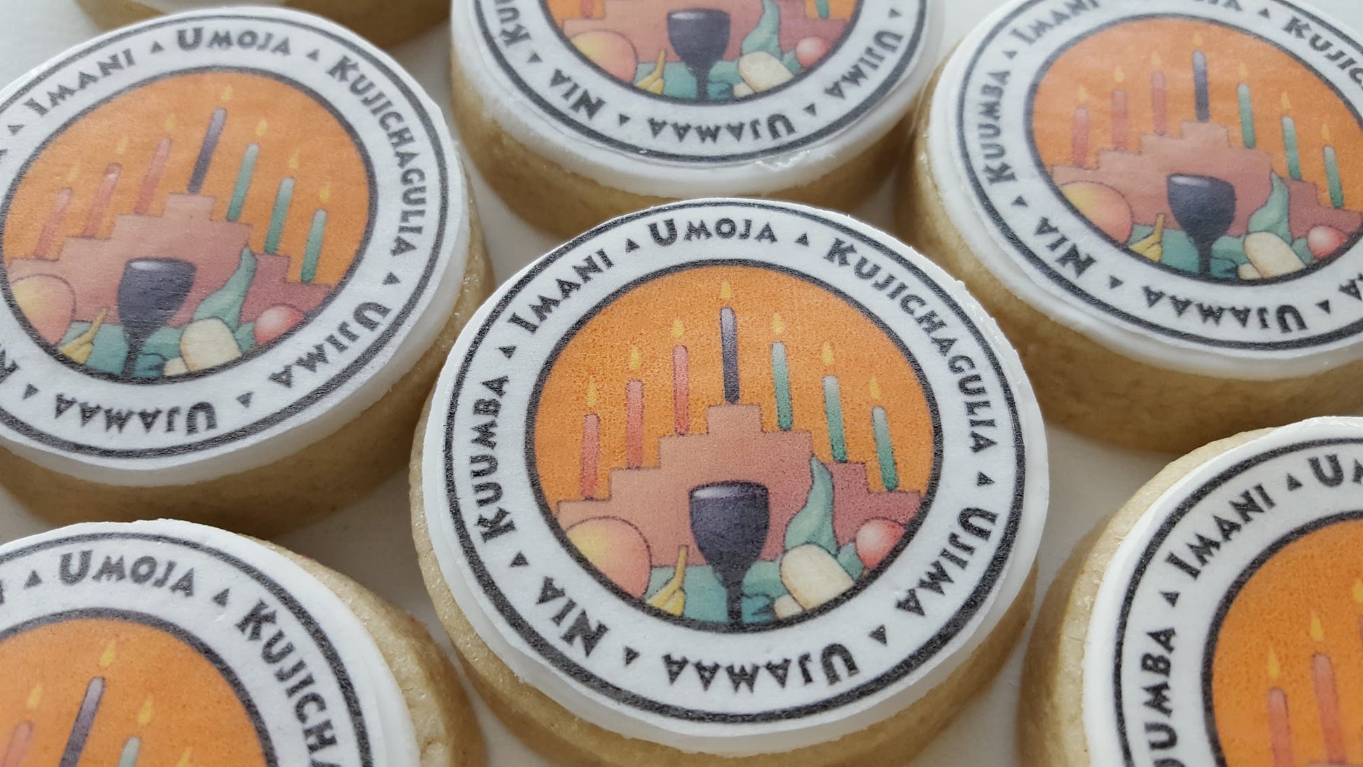 These Kwanzaa tea cookies are perfect for your Kwanzaa celebration and activities, or as hostess gift. Each cookie includes the seven principles for each day. Habari Gani? Umoja (Unity), Kujichagulia (Self-Determination), Ujima (Collective Work and Responsibility), Ujamaa (Cooperative Economics), Nia (Purpose), Kuumba (Creativity), and Imani (Faith). 1 dozen in decorative gift box,